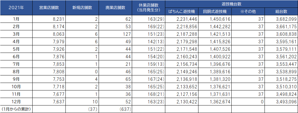 ①店舗数及び遊技機台数は、各月の末日現在の数